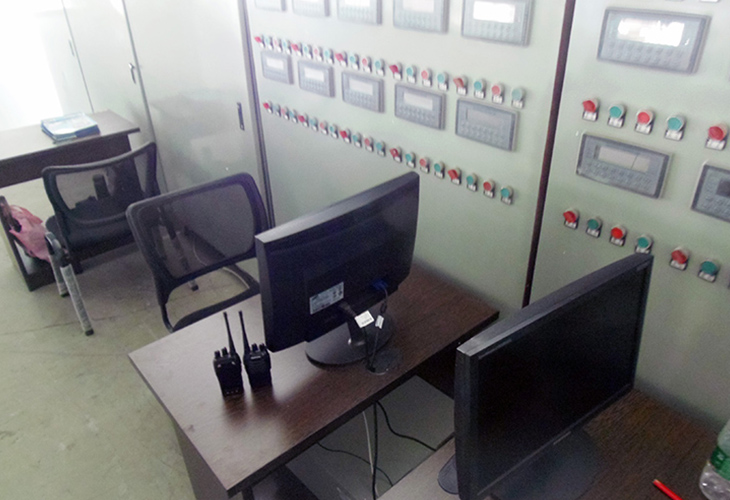 B、整體設(shè)備帶故障檢測系統(tǒng),后段設(shè)備故障,前段設(shè)備自動停止。并顯示故障點位置和原因,用報警燈顯示系統(tǒng)運行狀態(tài)(運行、故障、停止)。
